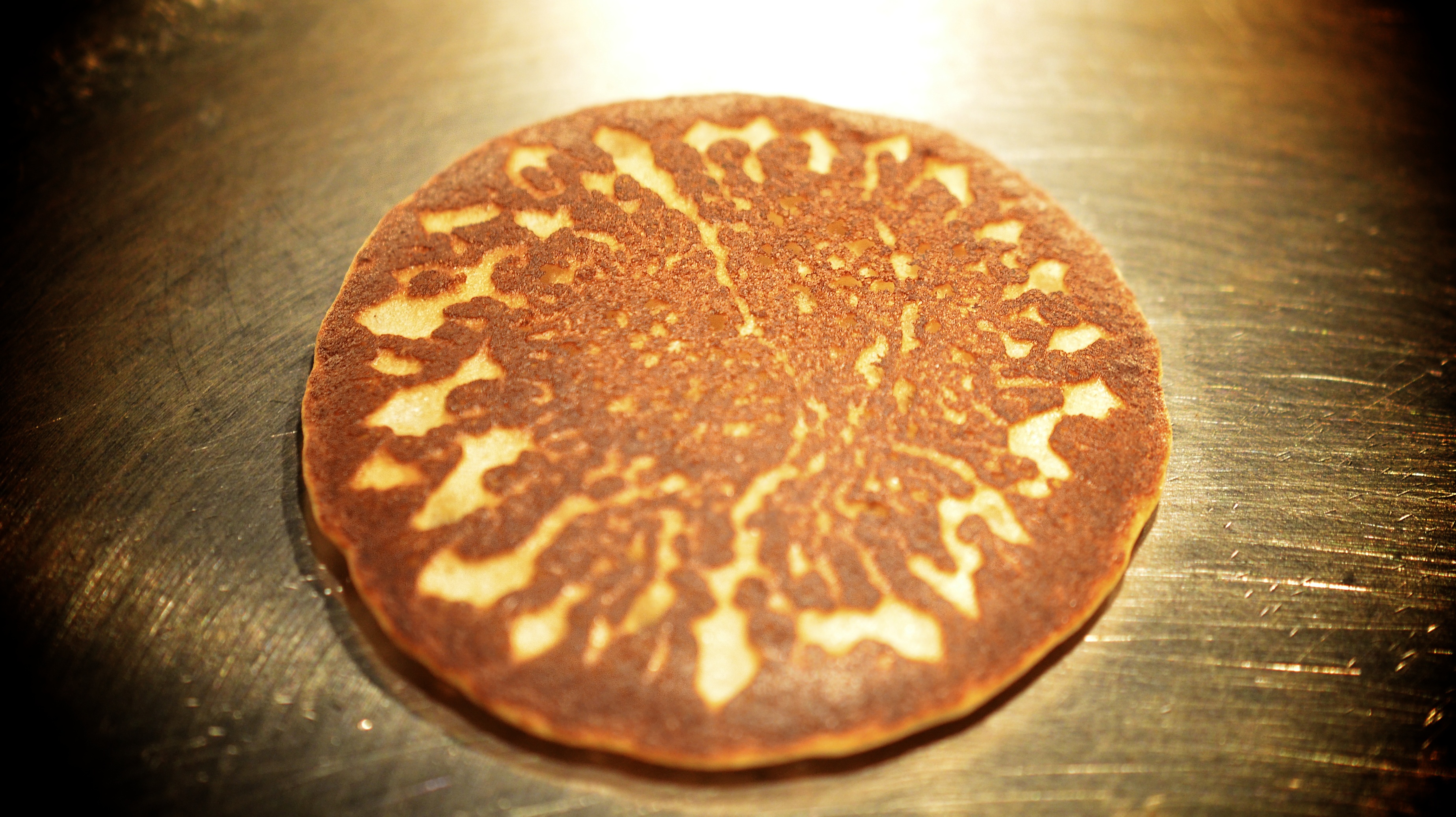 - Make sure pan is well heated. Pour batter onto pan leaving enough room to flip.
